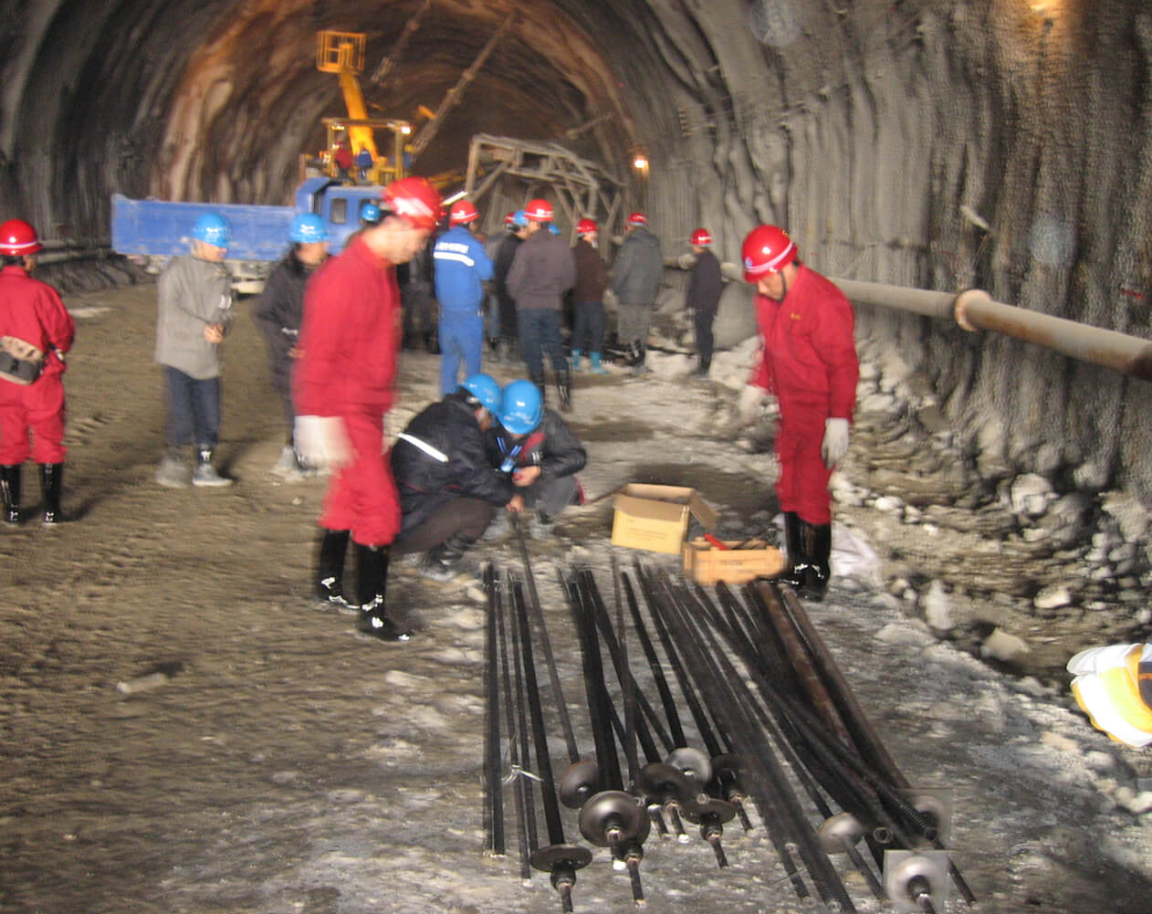 圖強低預(yù)應(yīng)力錨桿施工簡單方便,在鄭萬高鐵的隧道工程應(yīng)用中優(yōu)化的鋼拱架設(shè)置;在錦屏二級水電站高埋深巖爆威脅起到了極大作用;在京張高鐵八達嶺大跨度車站多硐室地下車站支護中極大的保證了安全性;如今正在國家重點工程川藏鐵路做為復(fù)雜地質(zhì)條件隧道系統(tǒng)主動支護發(fā)揮重大的作用。